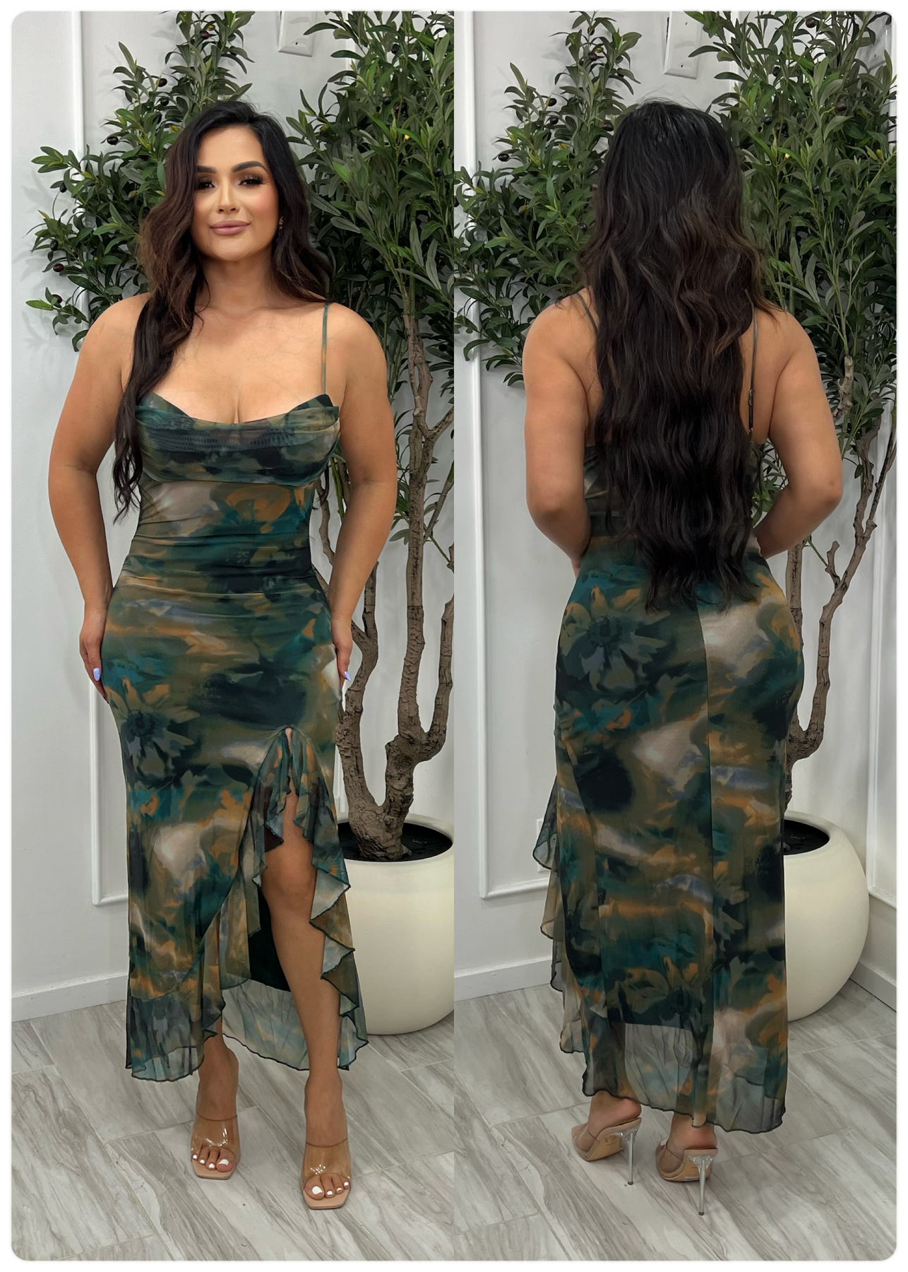 Midi marble printed mesh dress