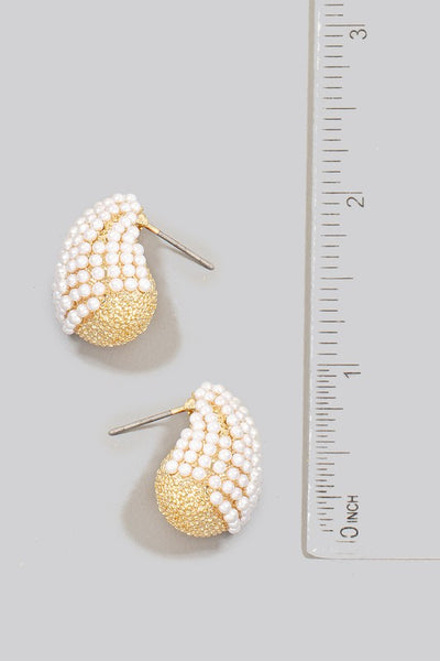 Rough Texture And Pearl Pave Tear Drop Stud Earrings