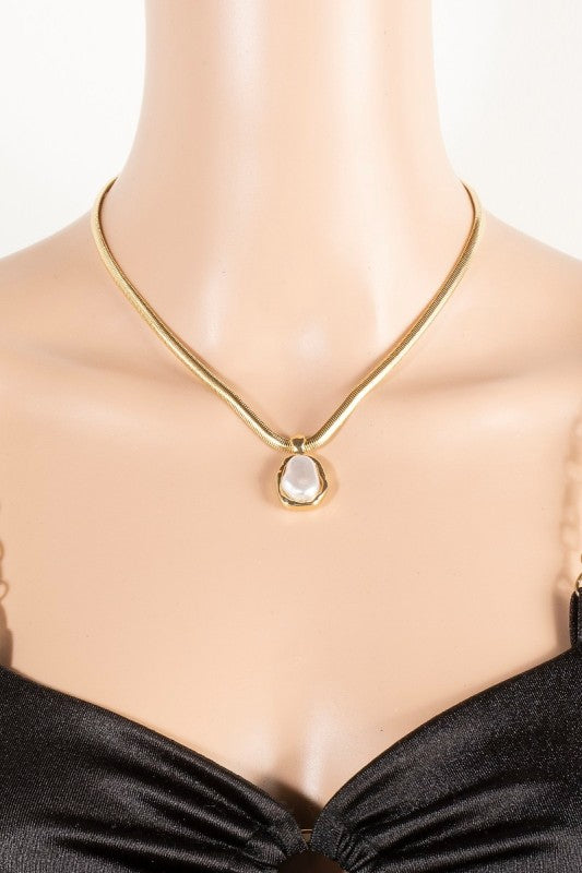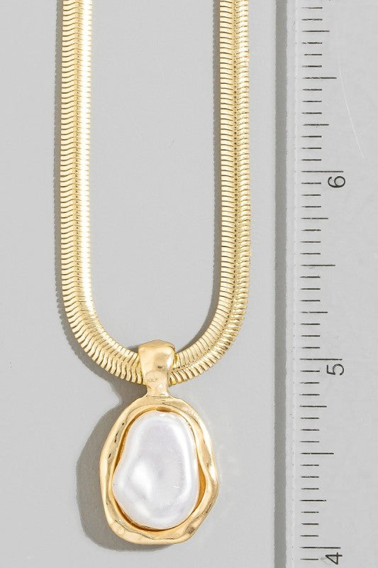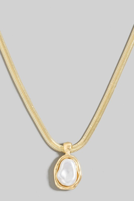 This chain necklace introduces a stunning pearl pendant herringbone style. Elevate your ensemble with this chain necklace that effortlessly captures the essence of refined fashion. THIS CHAIN NECKLACE APPROXIMATELY MEASURES: LENGTH: 16.5 INCHES