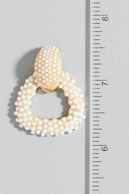 This pair of earrings brings a luxurious pearl studded door knocker style. Elevate your ensemble with this chic, timeless pair of earrings.
