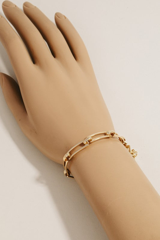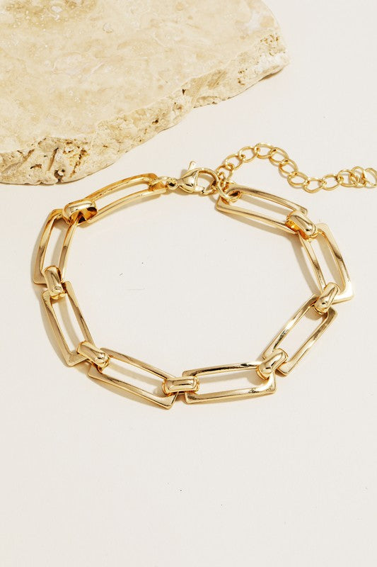 This chain bracelet brings a unique stainless steel metallic rectangle chain link bracelet style. Experience a burst of creativity in accessorizing as this piece effortlessly sets the tone for your unique style. This chain bracelet is featured in our Stainless Steel Collection. 100% STAINLESS STEEL